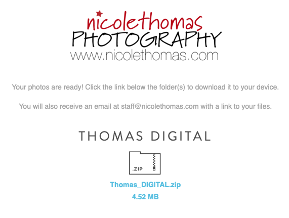 Once the “Preparing your Photos” message disappears, click directly on the zip folder and allow the download.