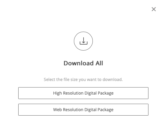 A window will open prompting you to choose High or Web Resolution. Choose the “Web Resolution Digital Package” option. The Web Resolution option is formatted for uploading to the web and emailing. High Resolution is more geared towards prints and will take up far more space on your device.